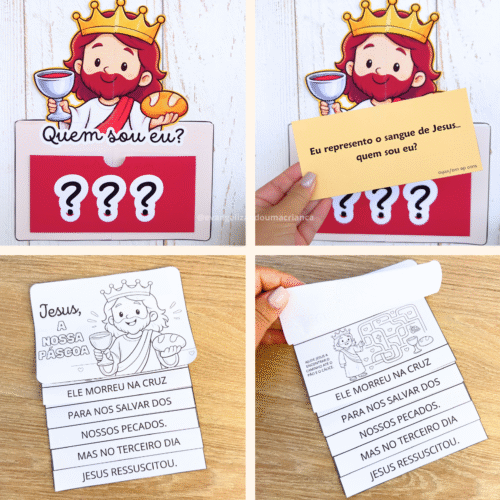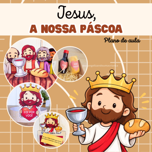 • Recurso visual: A Última Ceia – Ilustrações e explicação simples para apresentar o pão e o cálice, ensinando sobre o sacrifício de Jesus.